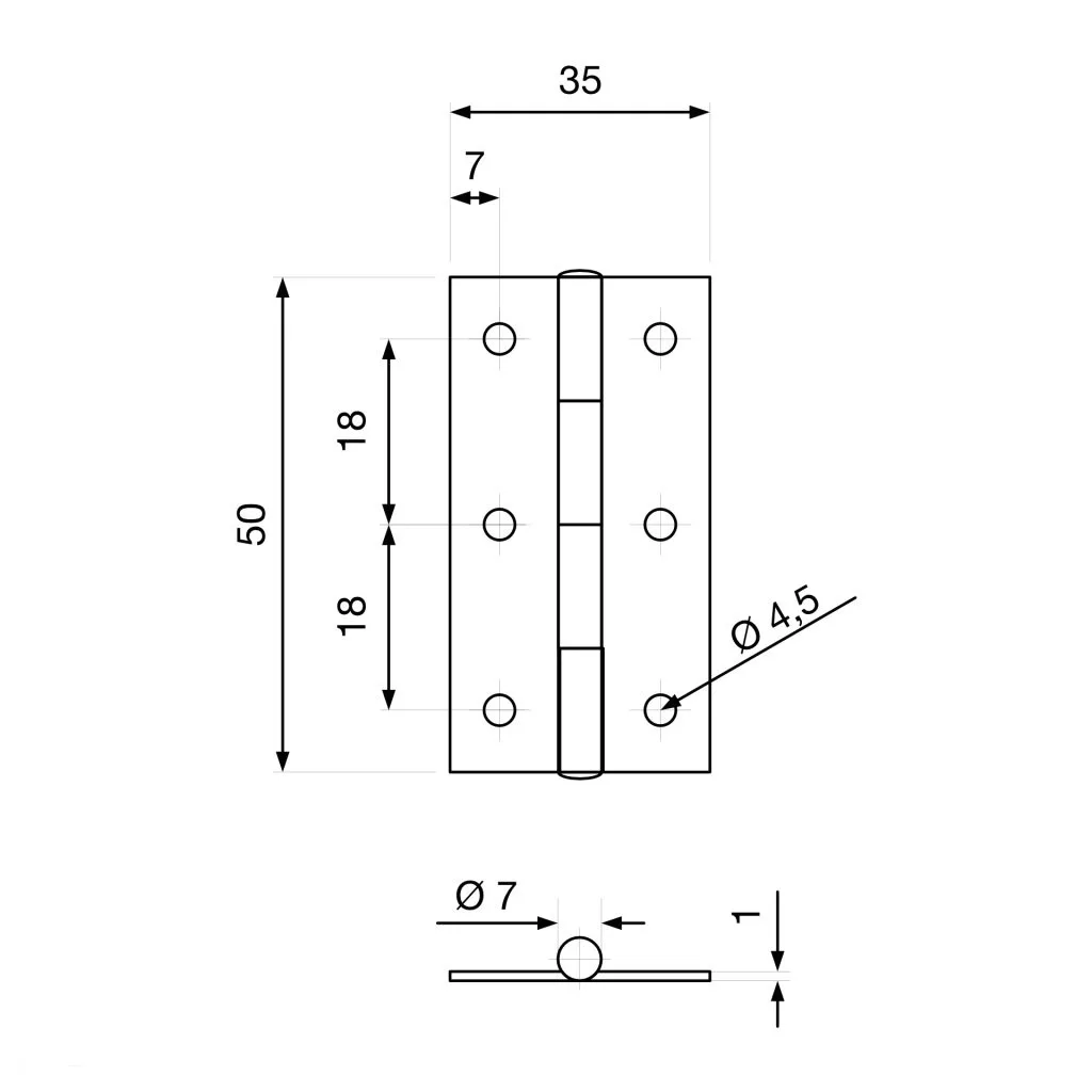 35x50 mm méretű horganyzott zsanér különféle ajtók, bútorok/dobozajtók rögzítéséhez műhelyben, kertben vagy nyaralóban.