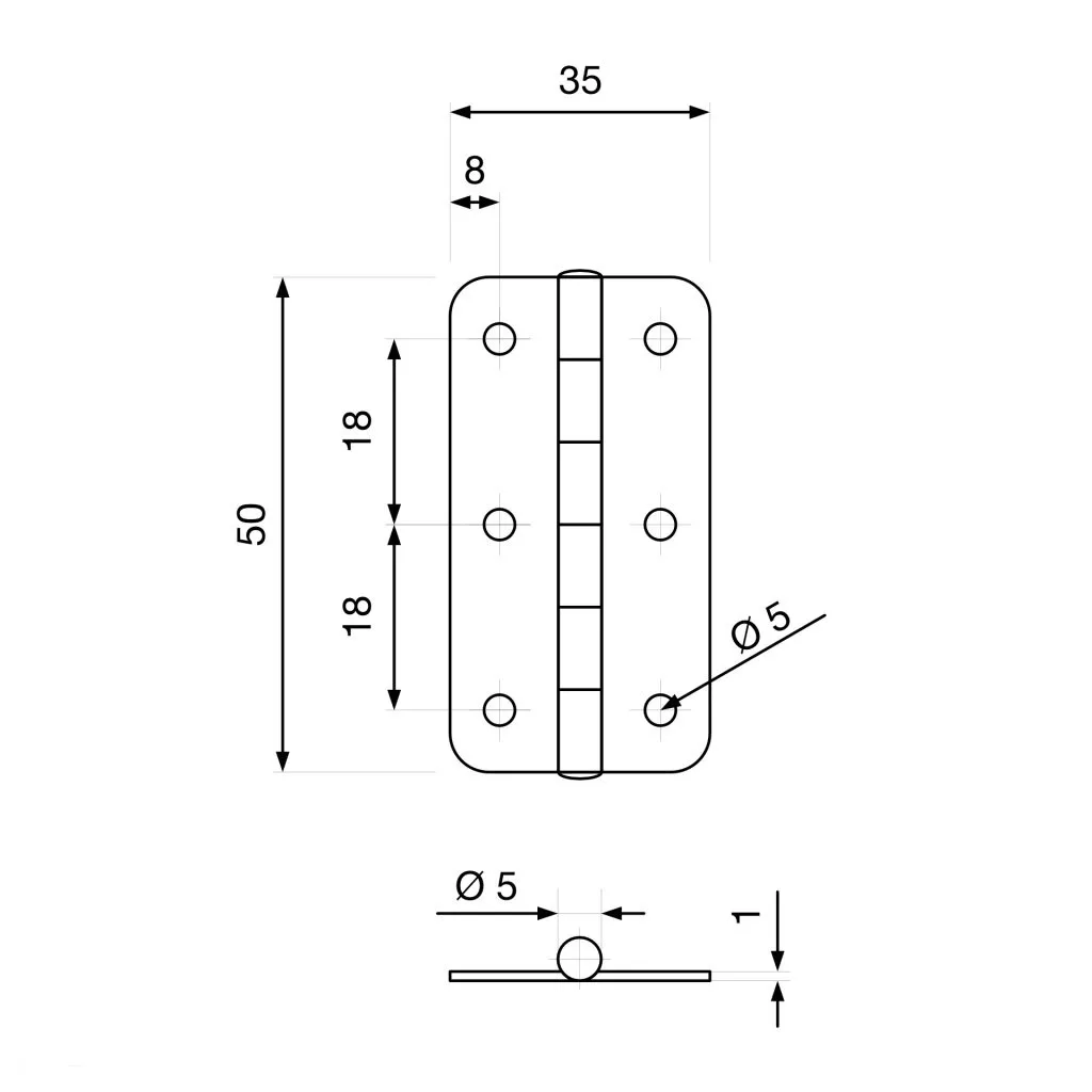 35x50 mm méretű rozsdamentes acél zsanér különféle ajtók, bútorok/dobozajtók rögzítéséhez műhelyben, kertben vagy nyaralóban.