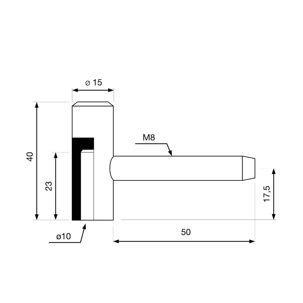 A zsanér felső része fehér horganyzott felületkezelésű, 50 mm-es csavarhosszal és M8-as menettel rendelkezik az ajtólaphoz.