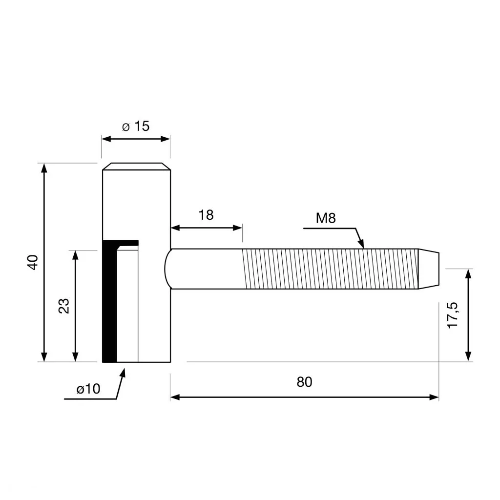 Nikkelezett felső zsanér 80 mm-es meghosszabbított csavarral és M8-as menettel tűzgátló ajtókhoz.