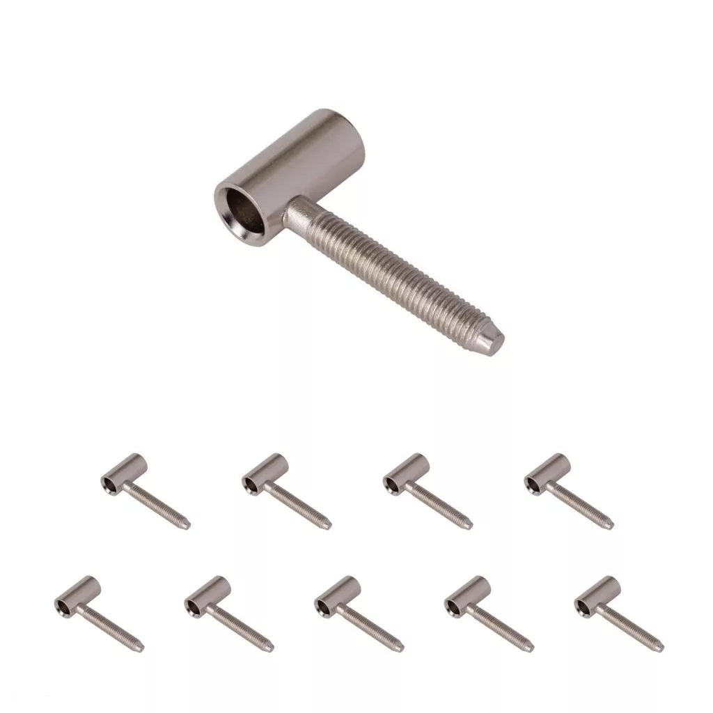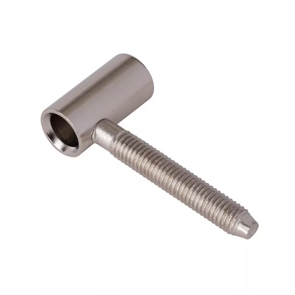 Nikkelezett felső pánt az ajtólaphoz, 50 mm-es csavarhosszal és M8-as menettel.
