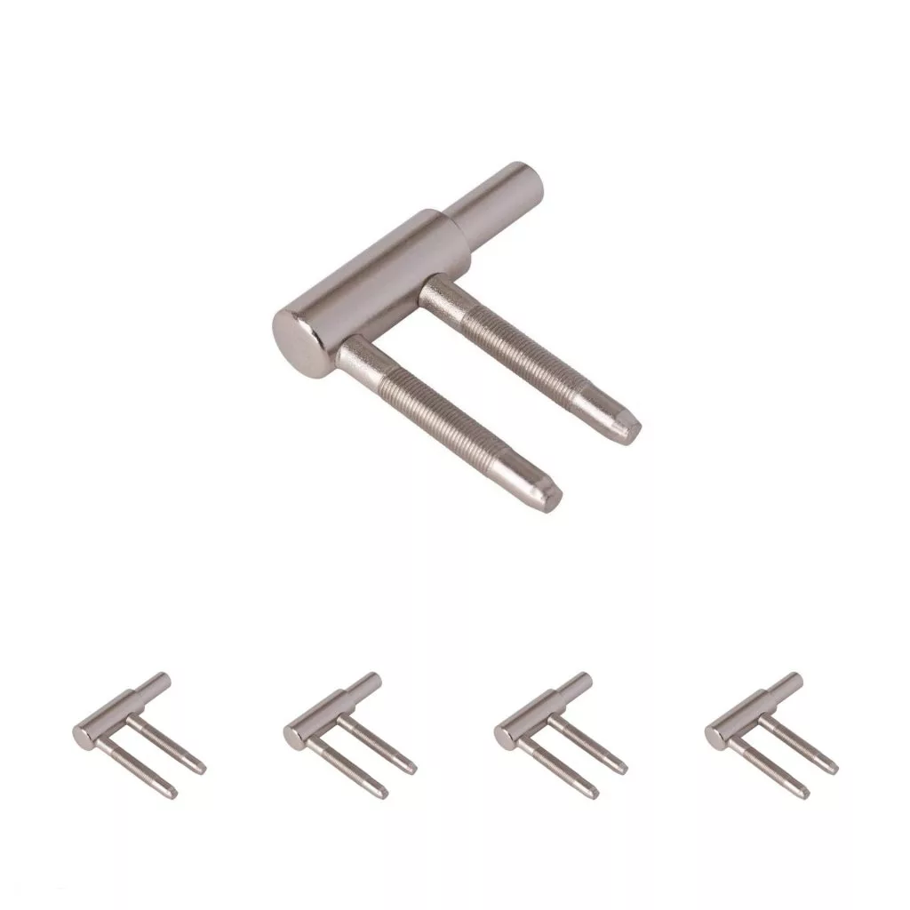 Nikkelezett ajtólap zsanér alsó része, 50 mm-es csavarhosszal és M7-es menettel.