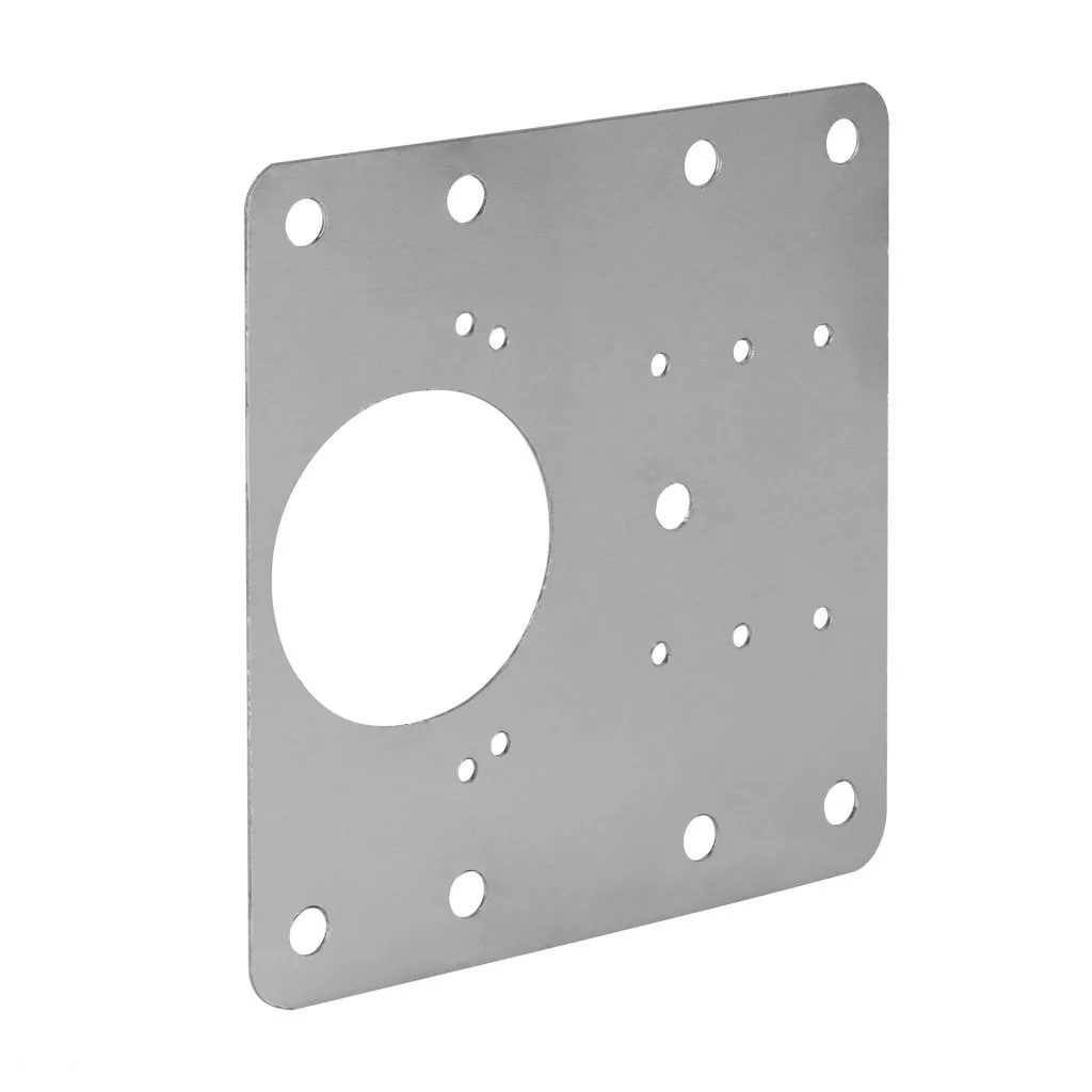 90x90 mm méretű rozsdamentes acél javítólemez 35 mm átmérőjű pántpánthoz.