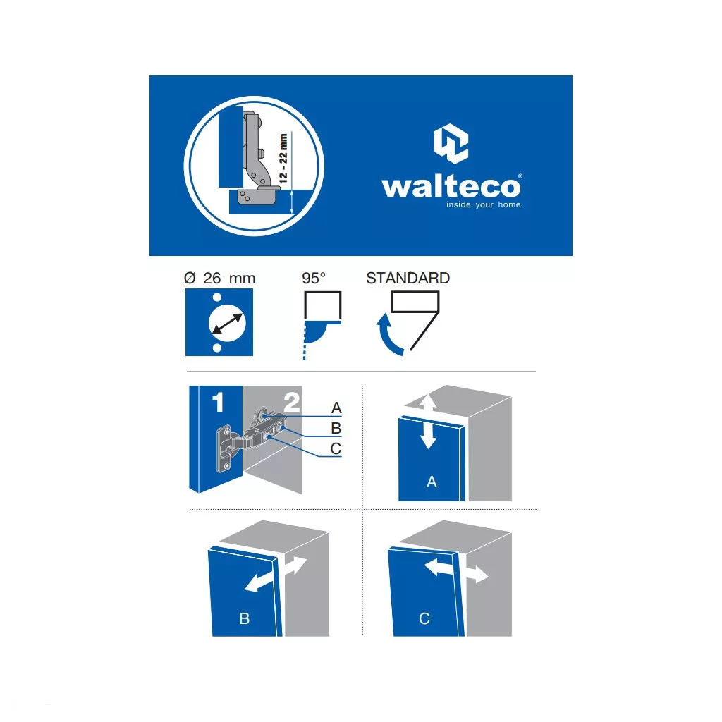 26 mm-es csésze átmérőjű bútorpánt félig átfedő ajtótípushoz. Útmutató a félig átfedő pánttípus helyes kiválasztásához.