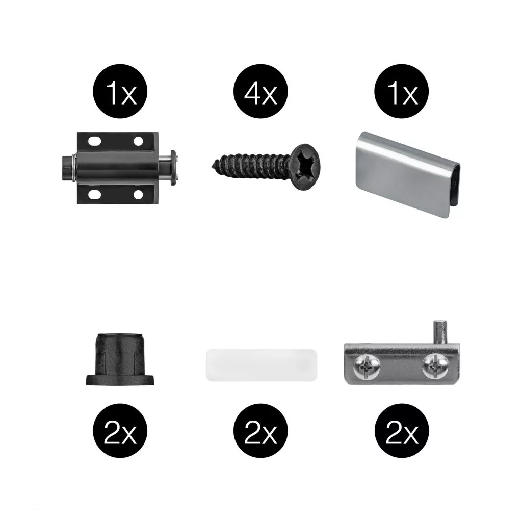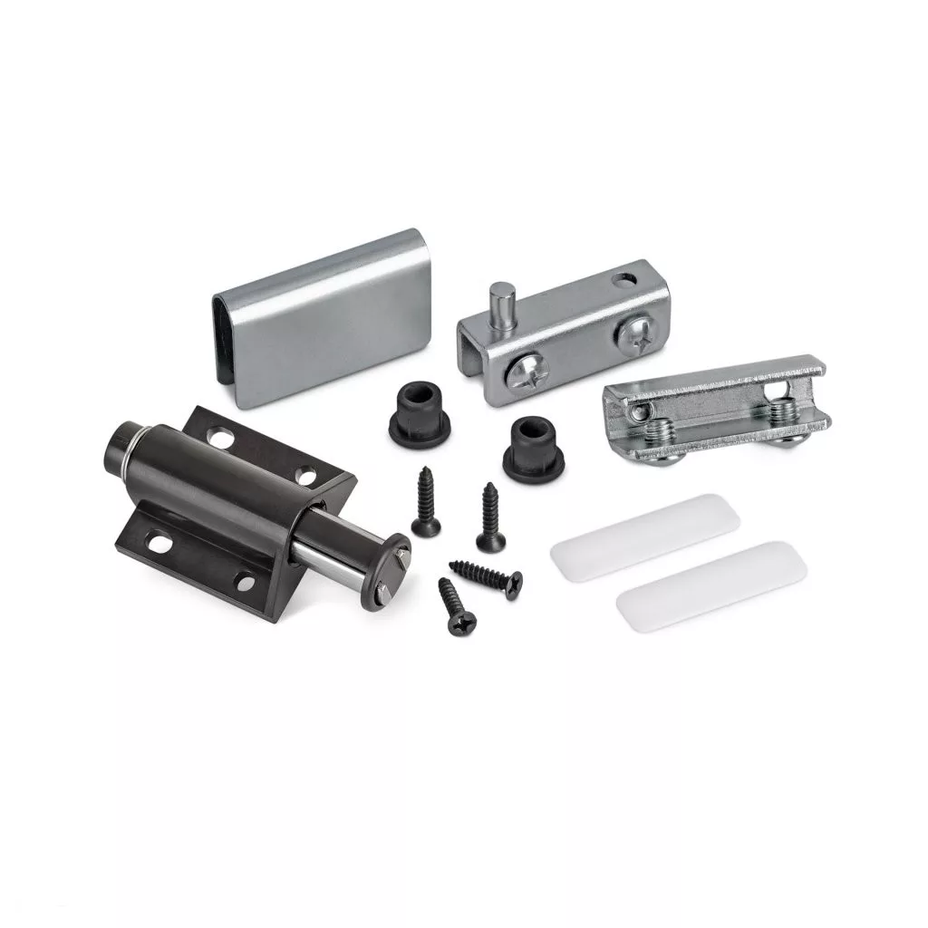 Forgópánt és mágneses zárbetét a maximum 8 mm üvegvastagságú üvegajtók könnyű nyitásához (nyomásra nyitás).