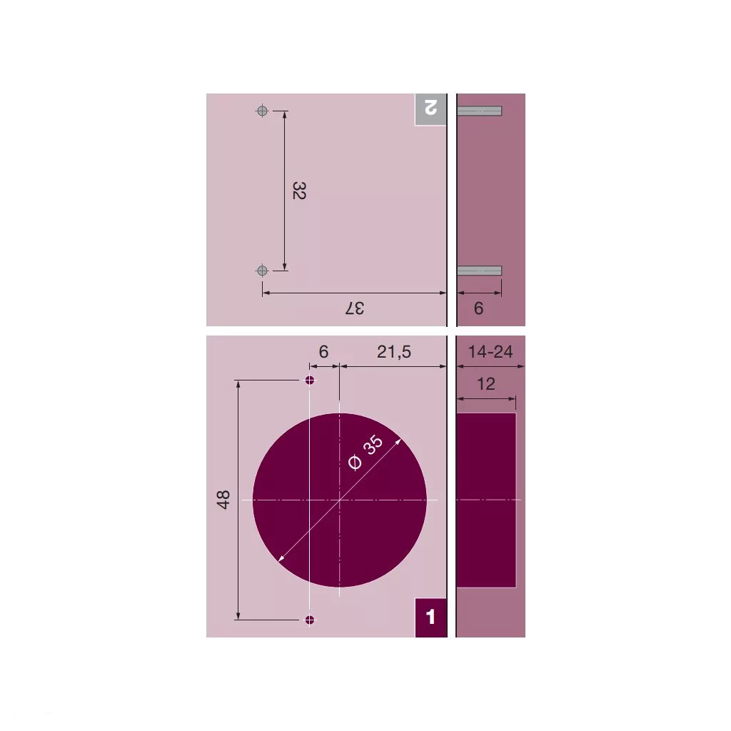 35 mm-es csészeátmérőjű és 30°-os nyitási szögű bútorpánt.