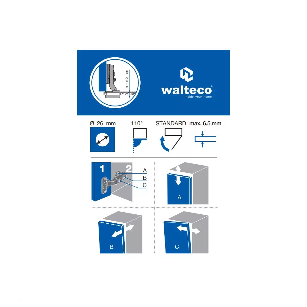 26 mm-es csésze átmérőjű bútorpánt félig átfedő üvegajtóhoz. Útmutató a félig átfedő pánt helyes kiválasztásához.