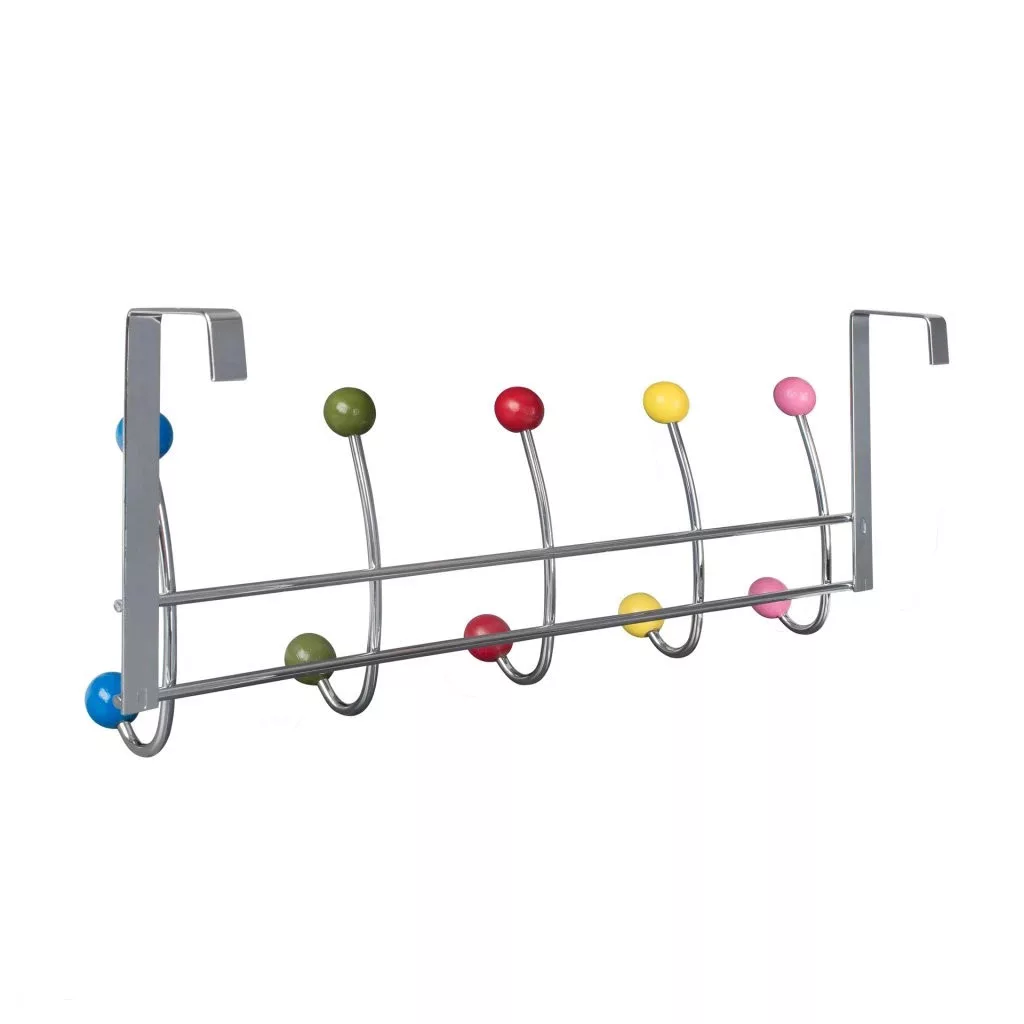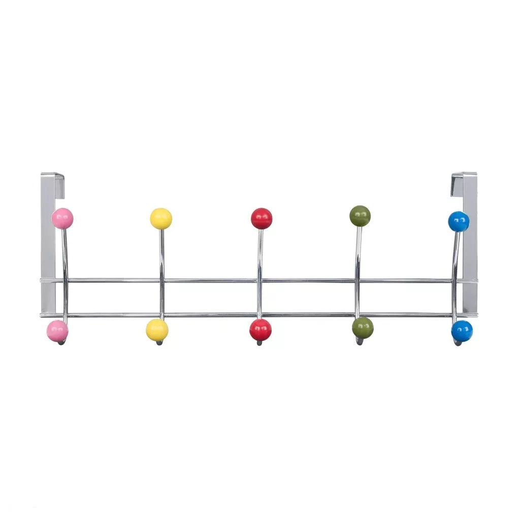 Ajtóakasztó 5 színes kampóval 40 mm-es felfüggesztéssel krómozott