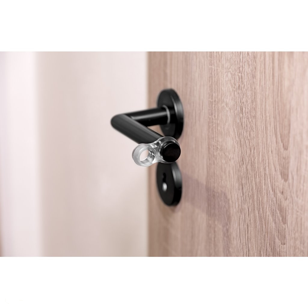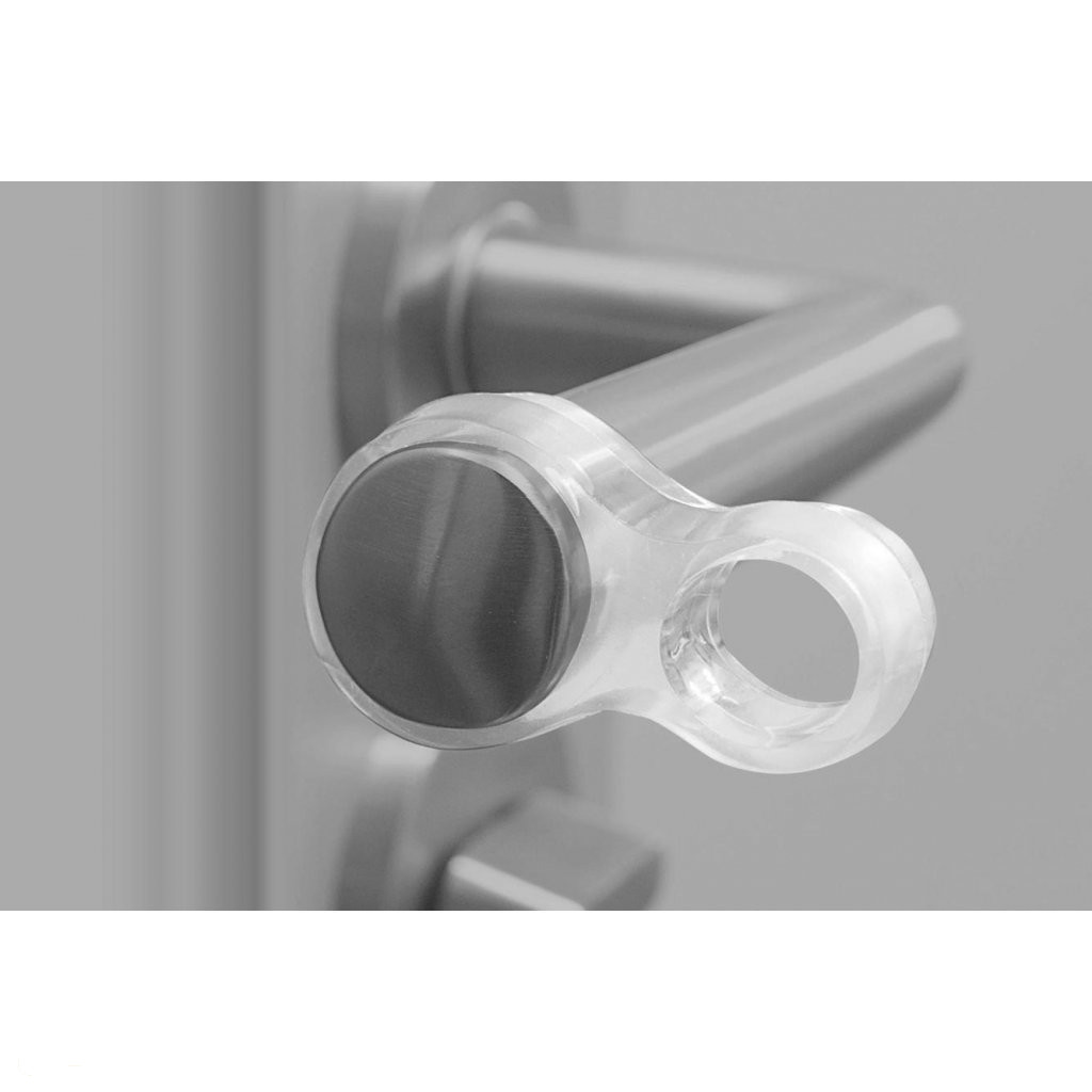 Átlátszó kilincsütköző 17 és 15 mm belső átmérővel. Rugalmasságának köszönhetően akár 20 mm-ig állítható. Védi a falakat és a bútorokat az ajtó- és ablakkilincsek ütéseitől. A ütköző ovális és kerek fogantyúkra is rögzíthető.