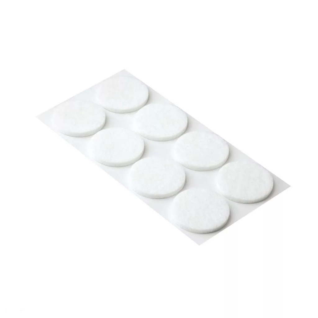 30 mm átmérőjű, öntapadós filcbetétek fehér színben. Védi a felületeket a karcolásoktól.