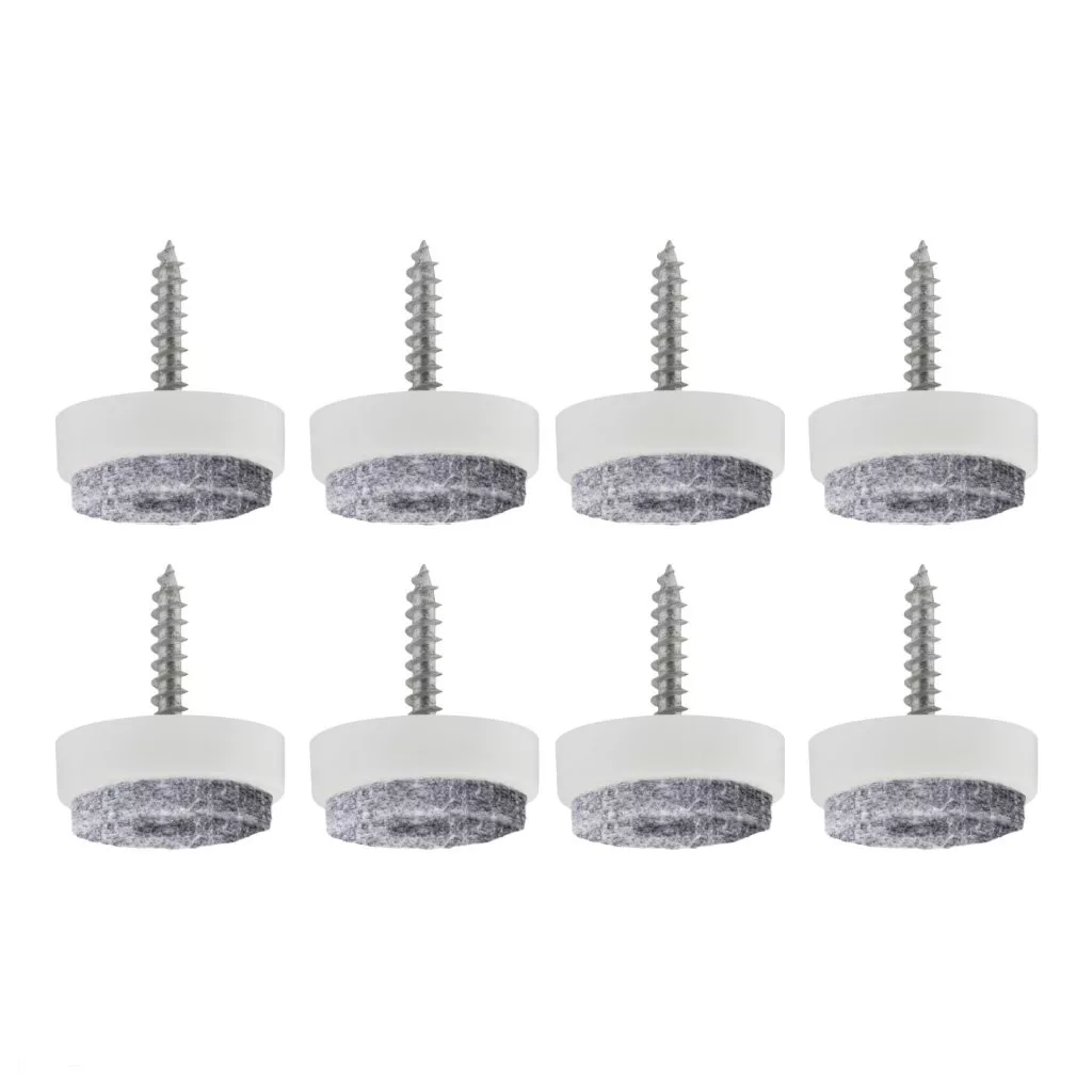 Filccsúszó 20 mm átmérőjű csavarral, fehér színben. Bútorok alá csavarozáshoz.