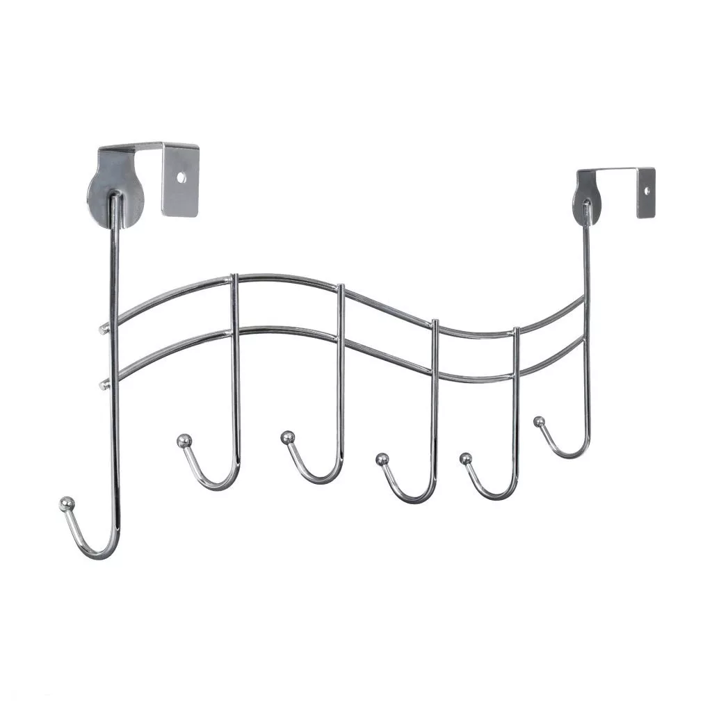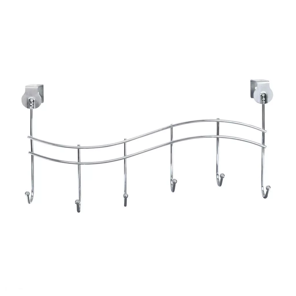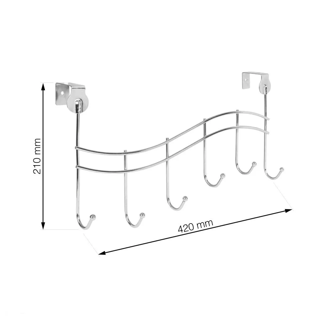 Wave ajtóakasztó 6 krómozott kampóval, szélessége 420 mm, magassága 210 mm és mélysége 95 mm. Akasztómélység 40 mm.
