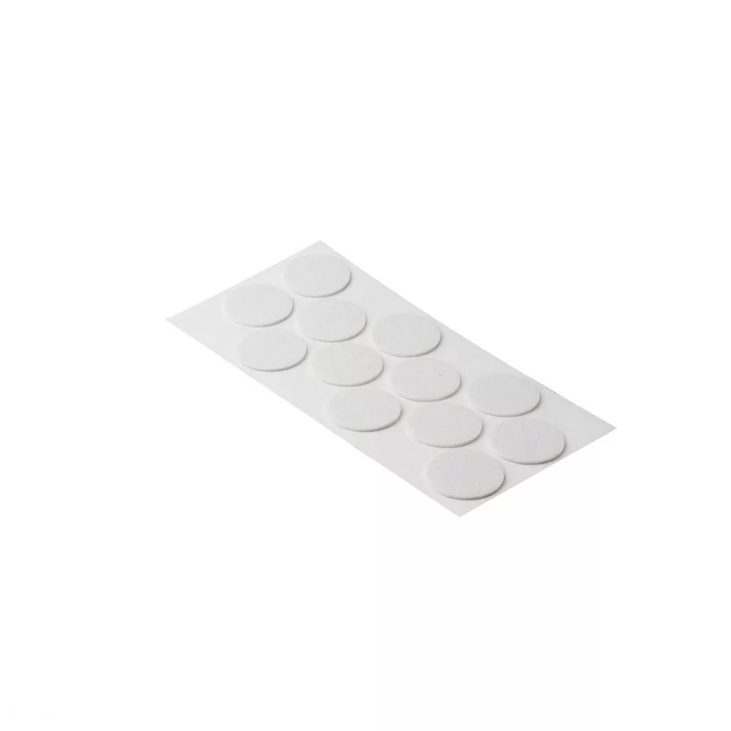 40 mm átmérőjű, öntapadós filcbetétek fehér színben. Védi a felületeket a karcolásoktól.