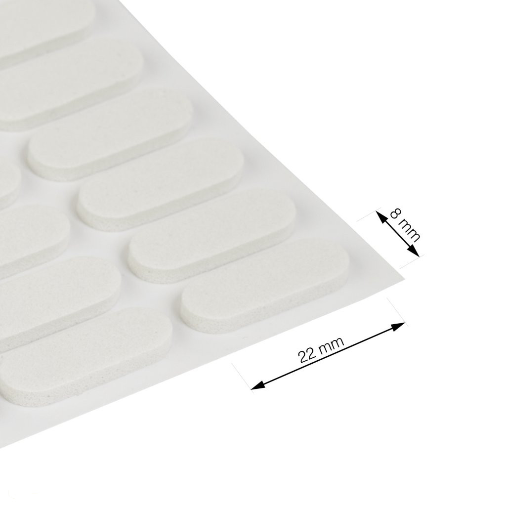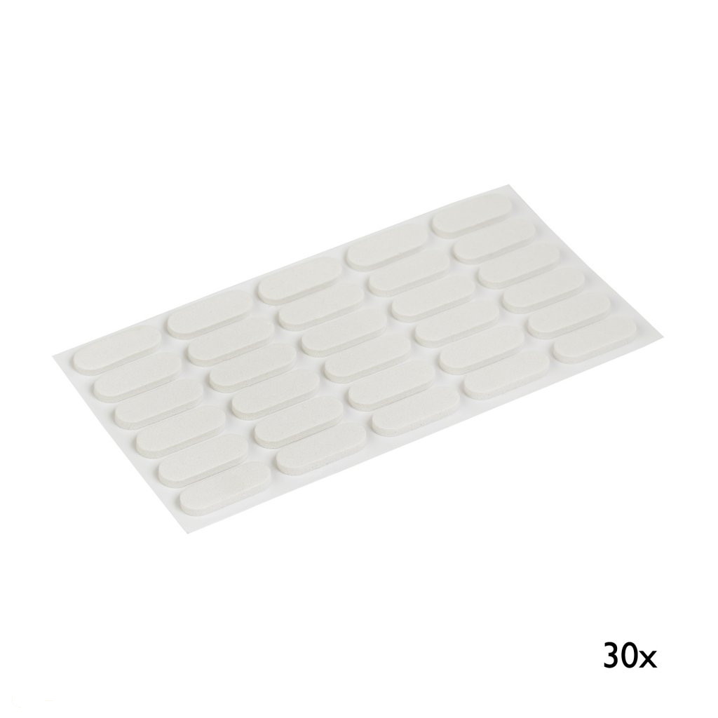 Öntapadós lengéscsillapító fehér kivitelben, 22 mm széles és 8 mm mély. A diszkrét lengéscsillapító ajtókhoz és fiókokhoz megakadályozza a hirtelen záródást és ütéseket. A csomag 30 darabot tartalmaz.