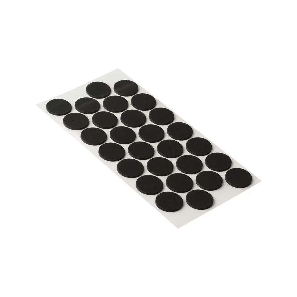 Öntapadós, csúszásgátló betétek 28 mm átmérővel, fekete színben. Könnyű, puha és rugalmas.