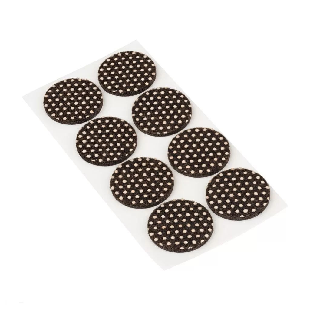 Öntapadós filcbetétek csúszásgátló pöttyökkel, 25 mm átmérőjű, barna színben.