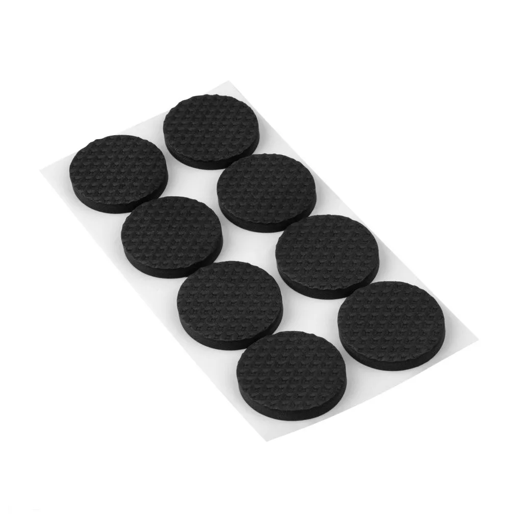 Öntapadós, csúszásgátló betétek 30 mm átmérővel, fekete színben. Könnyű, puha és rugalmas.