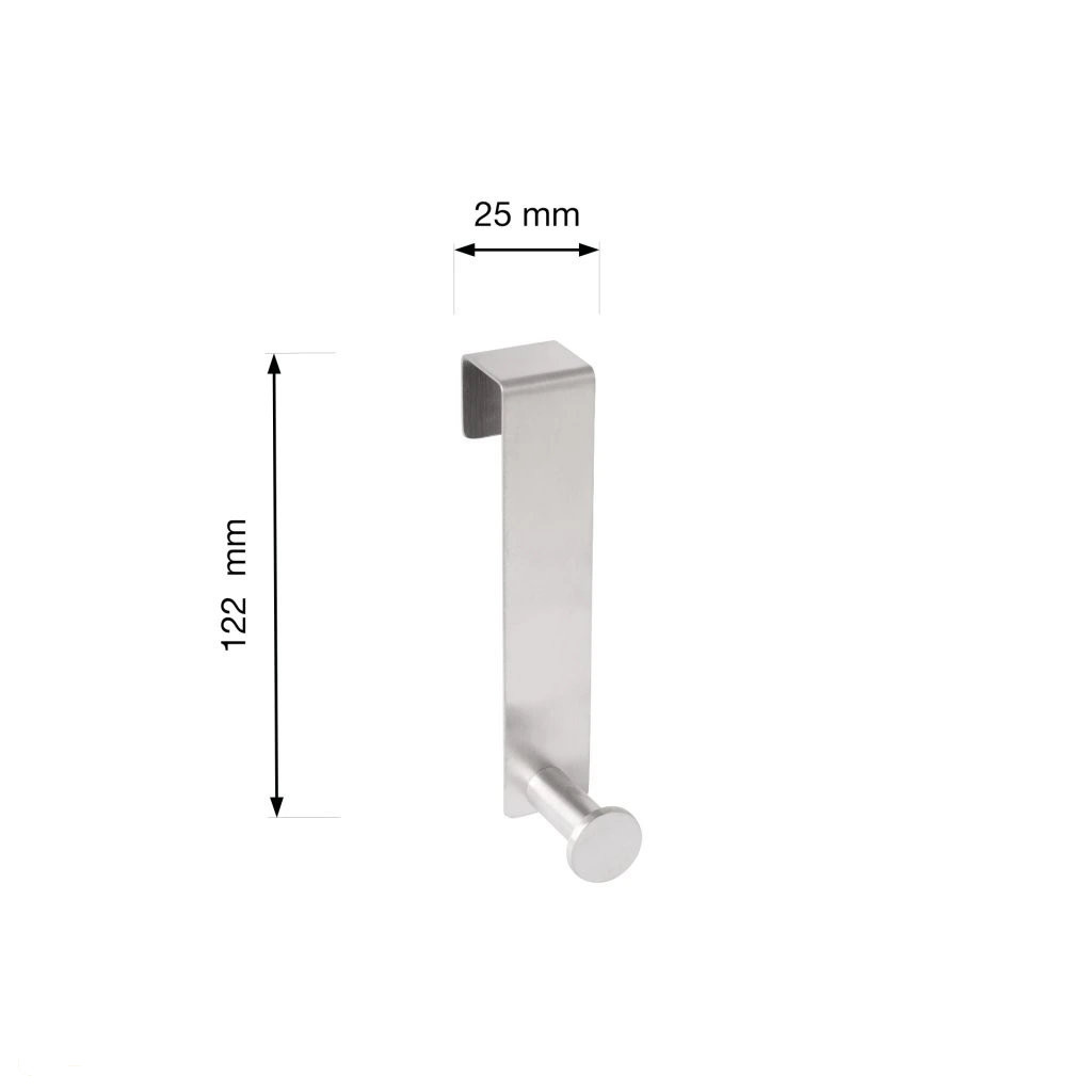 25 mm széles, 122 mm magas és 60 mm mély rozsdamentes acél ajtóakasztó. Az anyaguknak köszönhetően alkalmasak párás környezetbe - nem rozsdásodnak.