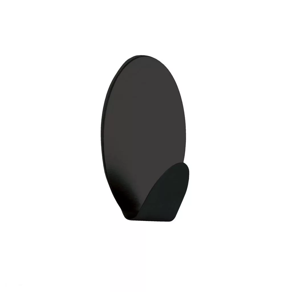 Ovális, öntapadós akasztó matt fekete színben, 45 mm széles, 71 mm magas és 28 mm mély. A csomag 2 db-ot tartalmaz.