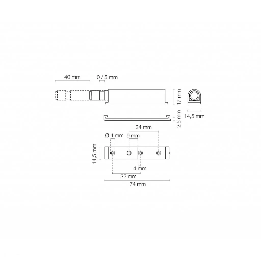 Nyomásra nyitható fogantyú nélküli ajtónyitó rendszer 74x14 mm fehér