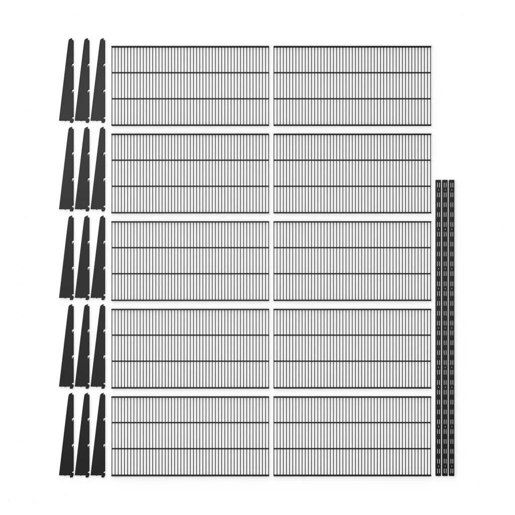 Univerzális fali polcrendszer DOUBLE (1500 × 1630 mm) 10 polccal két oszlopban.