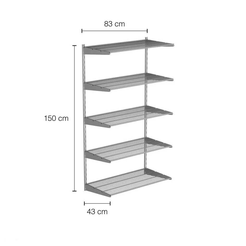 Univerzális fali polcrendszer SINGLE (1500 × 830 mm) 5 polccal és komplett.