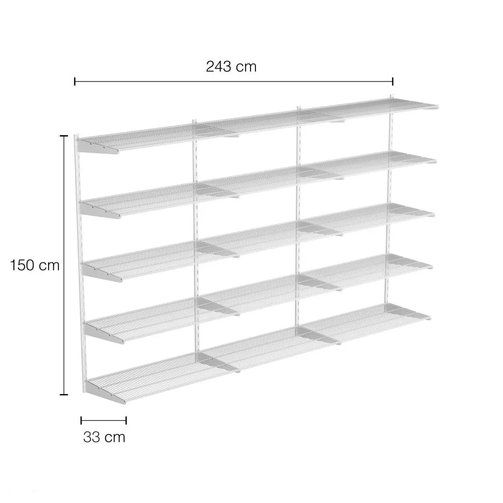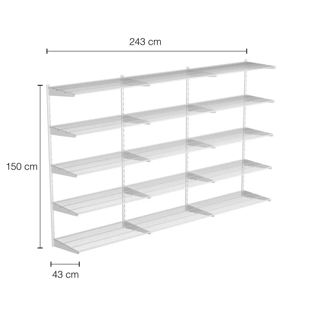 Falra szerelhető polcrendszer TRIPLE, 1500x2430 mm, fehér