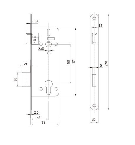 1. Mortise lock, portal lock