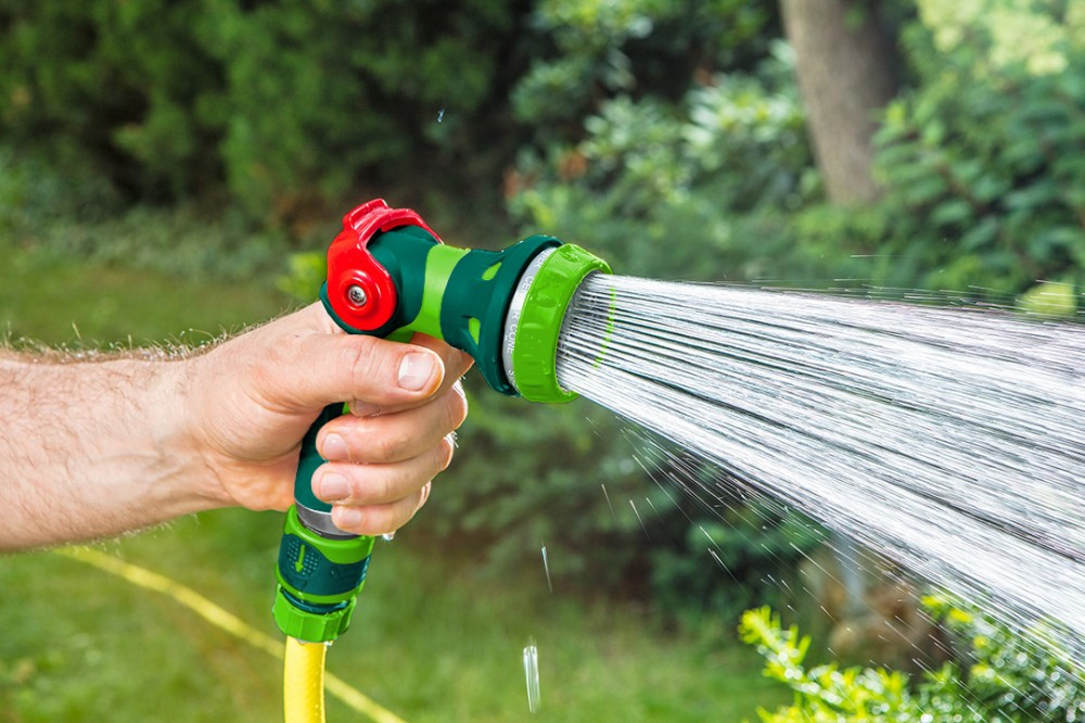 VERTO 8 funkciós locsoló pisztoly hüvelykujjal fokozatmentesen szabályozható vízsugár. A pisztoly vízsugár szabályozó funkcióval rendelkezik, lehetővé téve a vízsugár erejének hozzáigazítását a végzett munkához. A jól olvasható jelölések megkönnyítik a megfelelő vízsugár típus kiválasztását. Az ergonomikus alakítású markolat jól illik a kézbe és nem csúszik ki, ami növeli a munka komfortját.
