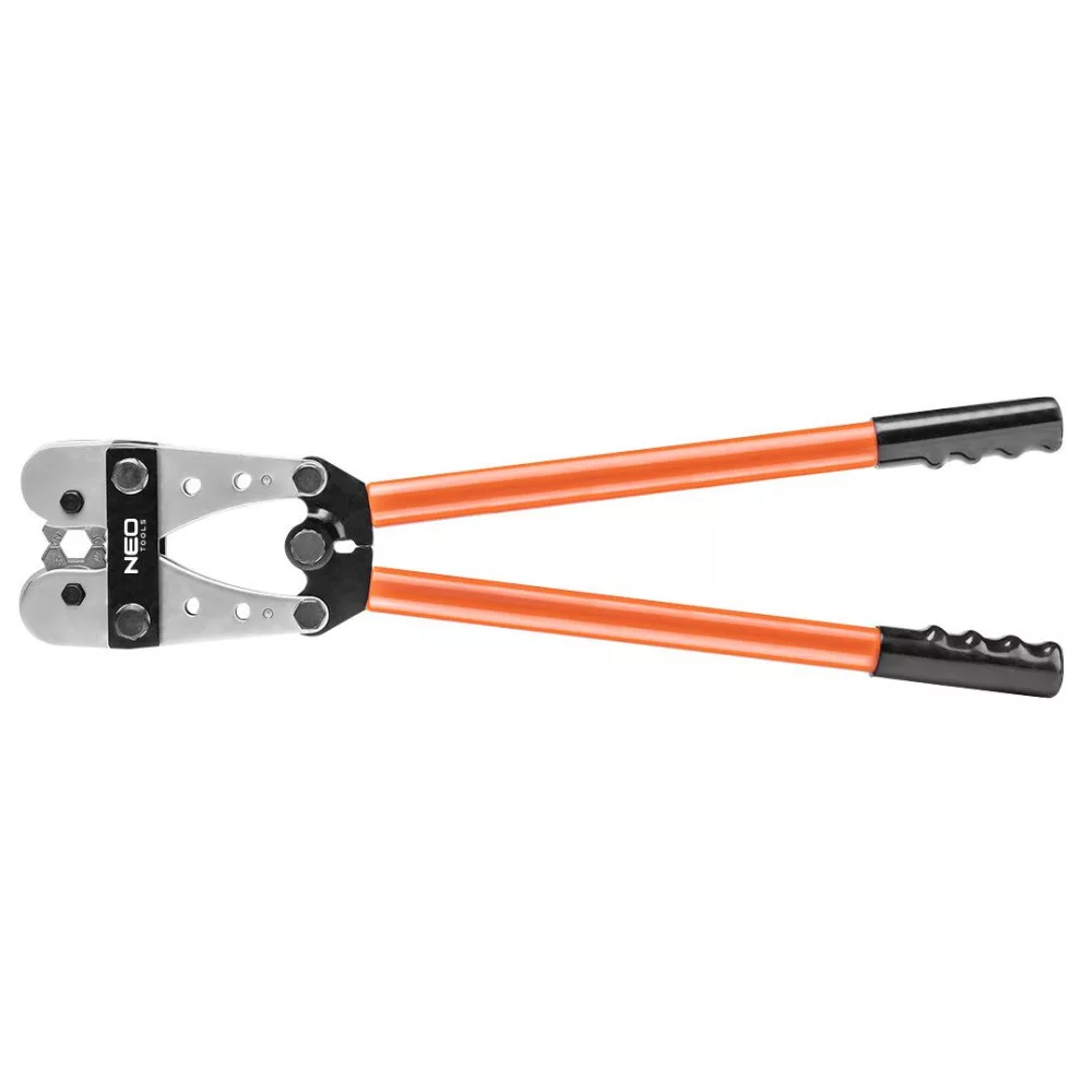 Sajtoló fogó konnektor csatlakozókhoz (ref. szám: 01-531) NEO, hossza 610 mm. A 10-120mm2 (8-4/0 AWG) végződésekhez használható. A méretek könnyű cseréje megkönnyíti a munkát. Az ergonomikus fogantyú növeli a komfortot.