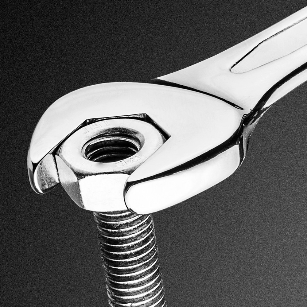 Csillag-villáskulcs 18 mm, hatlapú csillag, profilozott villa, CrV acél, DIN 3113 szabványnak megfelel, 25 év garancia.