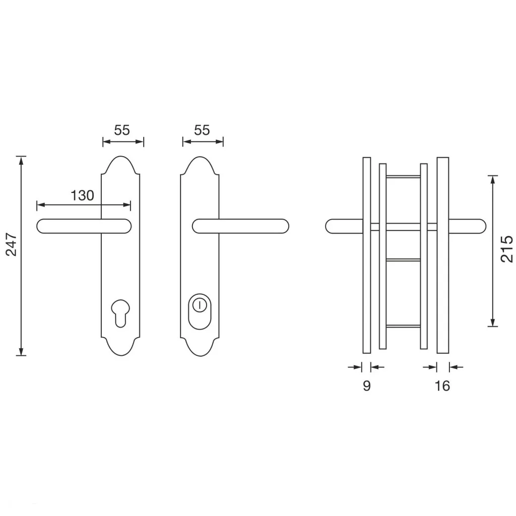 Marchesi Biztonsági kilincsgarnitúra ALT-WIEN pajzsos PZ 88 cilinder védelemmel RC3 PVD-sárgarézszín