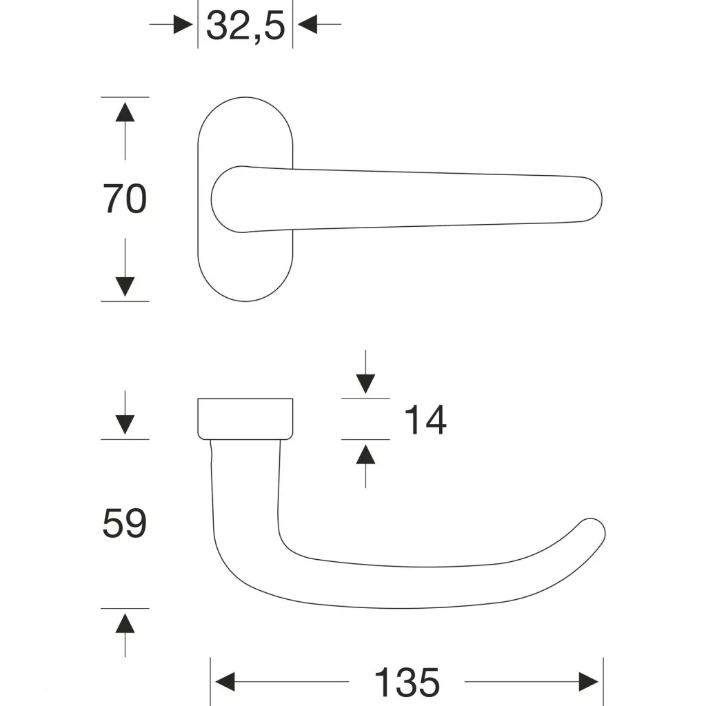 egyenes, ovális rozettás fix forgatható rejtett csavarozás Megjegyzés: Garnitúra: 1 perforált részből és 1 adapter rozettából áll keretezett ajtóhoz