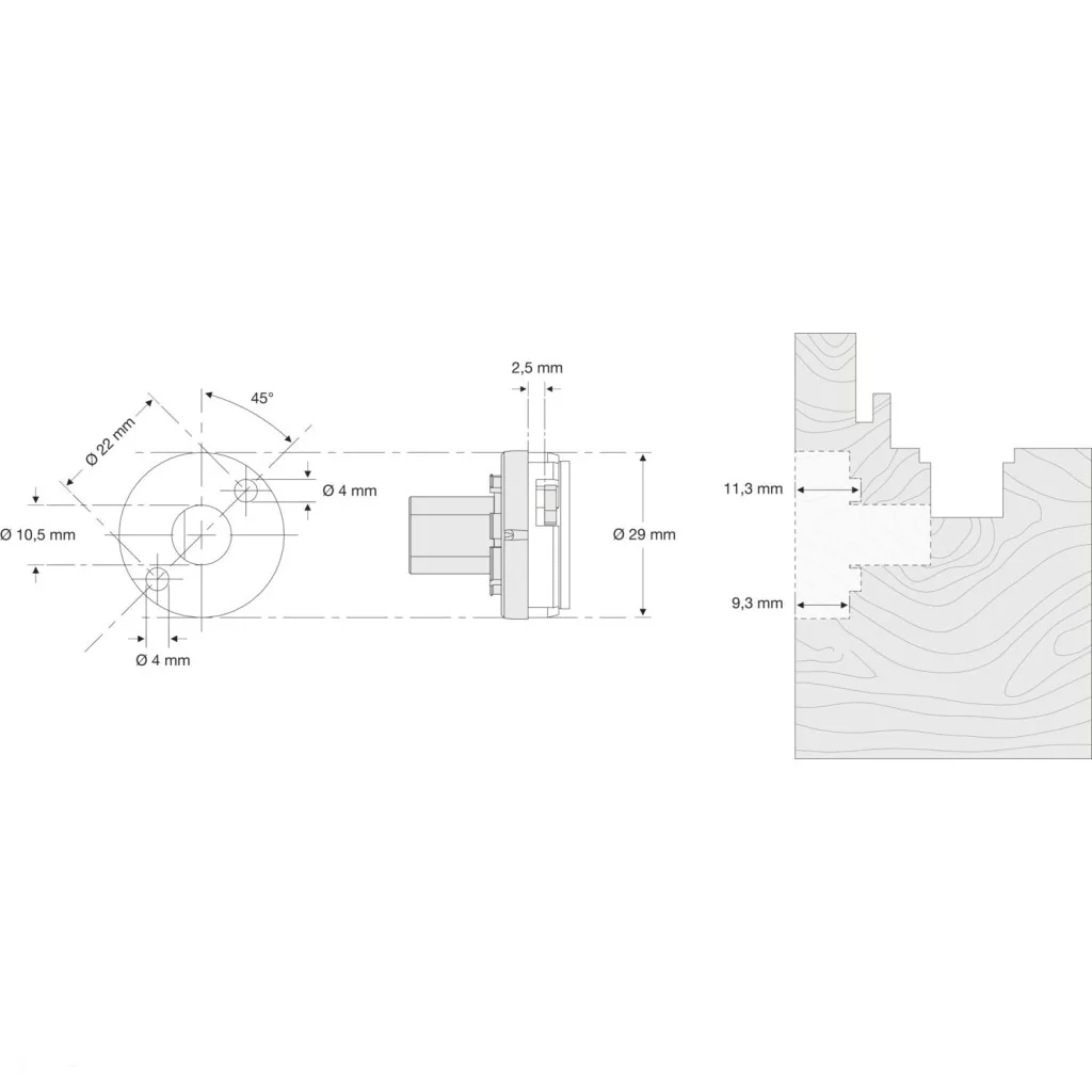A rögzítő rozettához szükséges mélység a fa profilban 9,3 mm. A fa ablakokra történő felszereléshez 4 csavar szükséges az alszerkezethez (pl. 3 x 12 mm, a fa vastagságától függően). Az M5 menetes csavarokat a szállítmány nem tartalmazza.