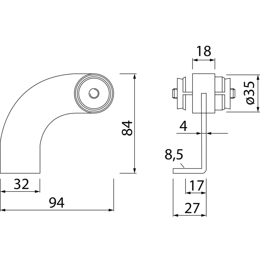 KWS középtámasz WShajlított 90° külső cső ? 35mm jobbmatt rozsdamentes