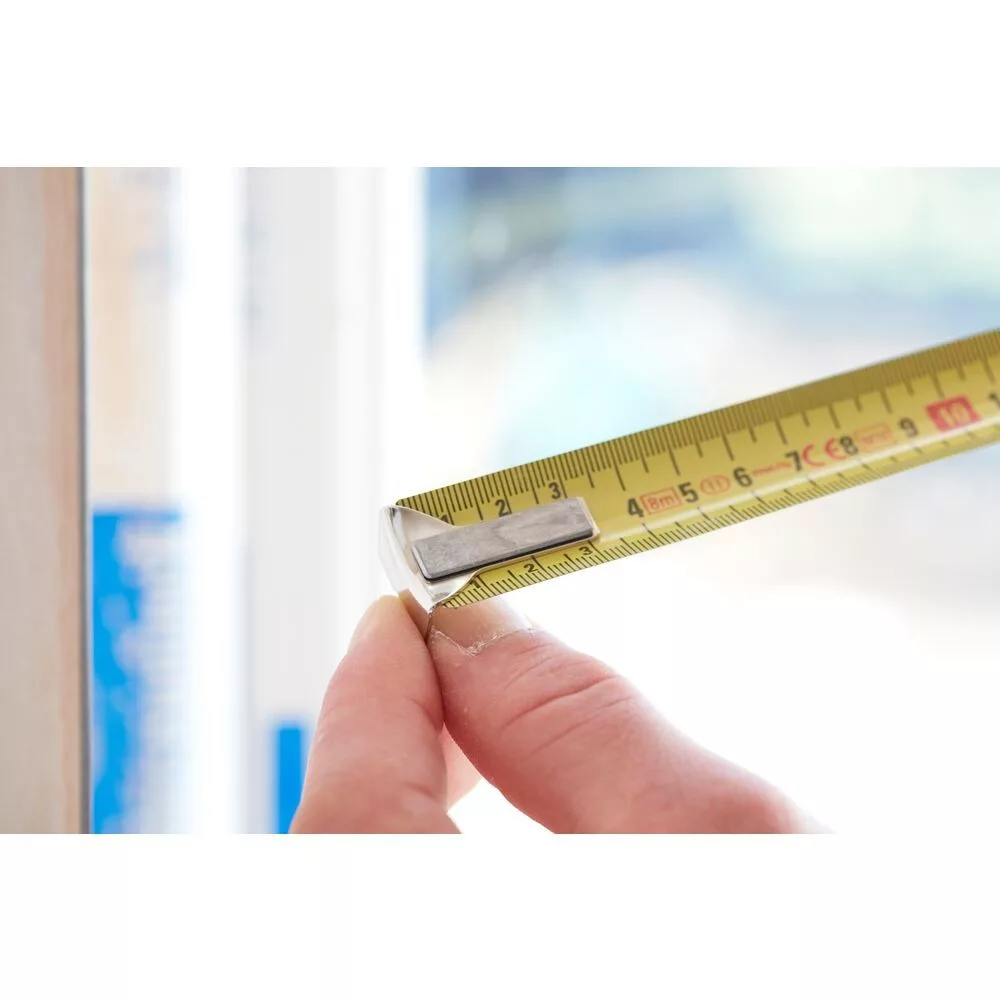Kompakt ház, könnyebb fogás A Mylar® bevonatú szalag 10-szeres élettartam, más hagyományos lakkbevonatúhoz képest True zero kampó a pontos külső és belső mérésekhez A 3 szegecses kampó 40%-kal tartósabb a 2 szegecseshez képest Hosszan kitartható szalag a 19 mm vastagságtól Erős, krómozott ház Szalagszélességek 25,19 és 12,7 mm Pontossági osztály II Recézett stop gomb Övtartó, a könnyű tároláshoz 8 mm