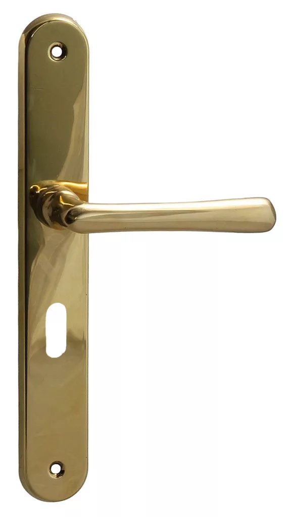 Acest mâner de ușă este realizat din cupru, ceea ce oferă casei dumneavoastră un aspect elegant și atemporal. Suprafața protejată cu lac asigură longevitate și rezistență, păstrând frumusețea originală a clanței și după ani de zile.