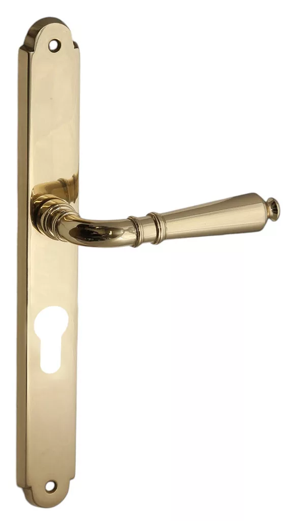 Producție premium italiană. Produs premium cu design elegant, frumos lucrat. Suprafata lacuita lucioasa. Linia de produse Alt Wien este un decor elegant și clasic al caselor burgheze de astăzi. Din material de cupru, cu scut turnat. Un șurub cu omidă oferă o fixare suplimentară pe feronerie. Întotdeauna în stoc!