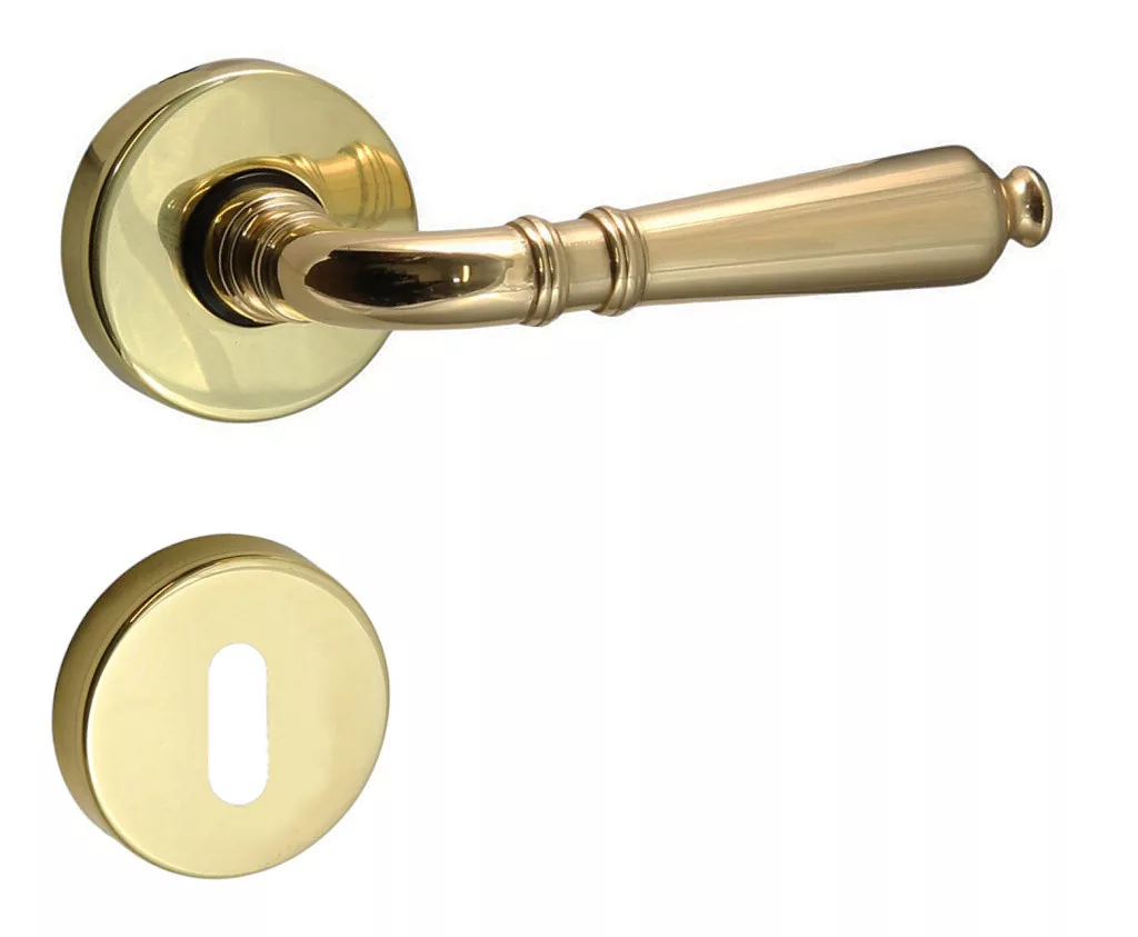 Mânerul ușii este realizat din material de cupru, ceea ce îi garantează o durată lungă de viață. Un produs elegant, curat, pentru eleganța de zi cu zi. Recomandăm acest tip tuturor pentru că poate fi montat cu ușurință pe toate tipurile de încuietori fără măsurare. Trebuie doar să decideți dacă aveți nevoie de un pumn pentru cheie sau cilindru. Punctele de fixare sunt acoperite cu elemente decorative din cupru, astfel încât designul lor este foarte estetic. Un șurub Allen suplimentar de fixare este plasat în mânerele ușii, făcând astfel mânerul ușii și mai robust. Suprafața sa strălucitoare de cupru face ca produsul să fie cu adevărat elegant. Piesa clasica, eleganta, confortabila.