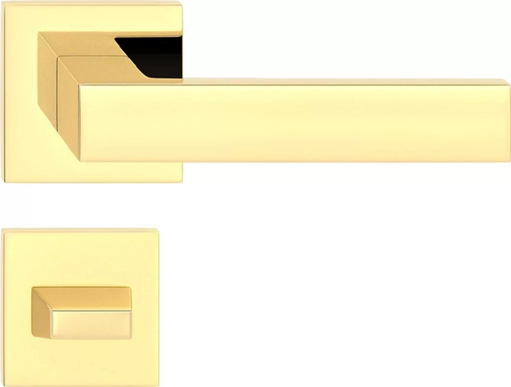 CUBE ajtóajtókilincs négyzet alakú rozettás Q SLIM vékony fényes sárgaréz WC