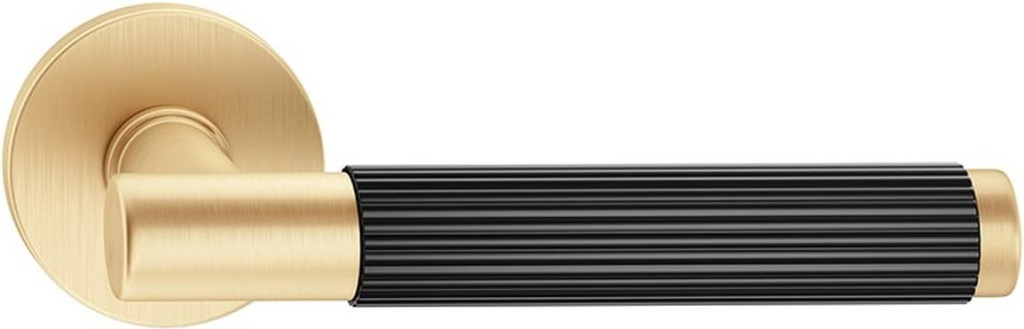 TIME LINEAR ajtókilincs kerek rozettás R SLIM szatén sárgaréz fekete ajtókilinccsel - CORONA PREMIUM