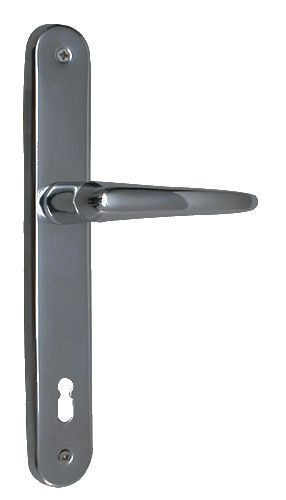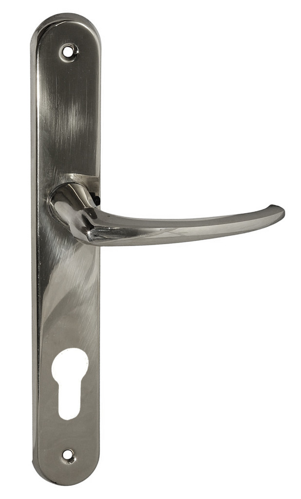 Mâner de ușă din alamă și suprafața sa este cromată cu arc.