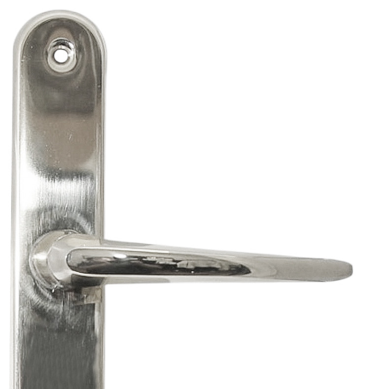 Mâner de ușă din alamă și suprafața sa este cromată cu arc.