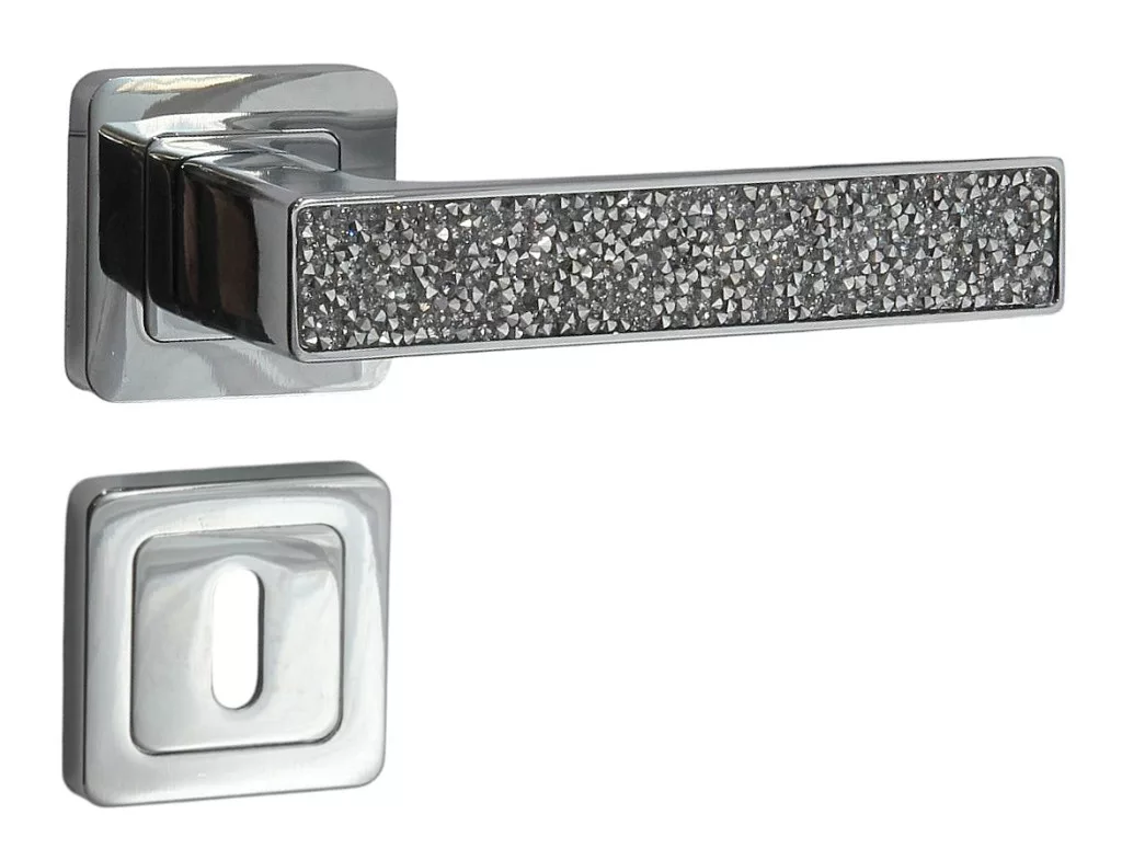 Caracteristica specială a mânerelor ușilor sunt incrustațiile decorative realizate din cristale negre sau albe, care conferă o strălucire și strălucire incomparabilă fiecărei piese.