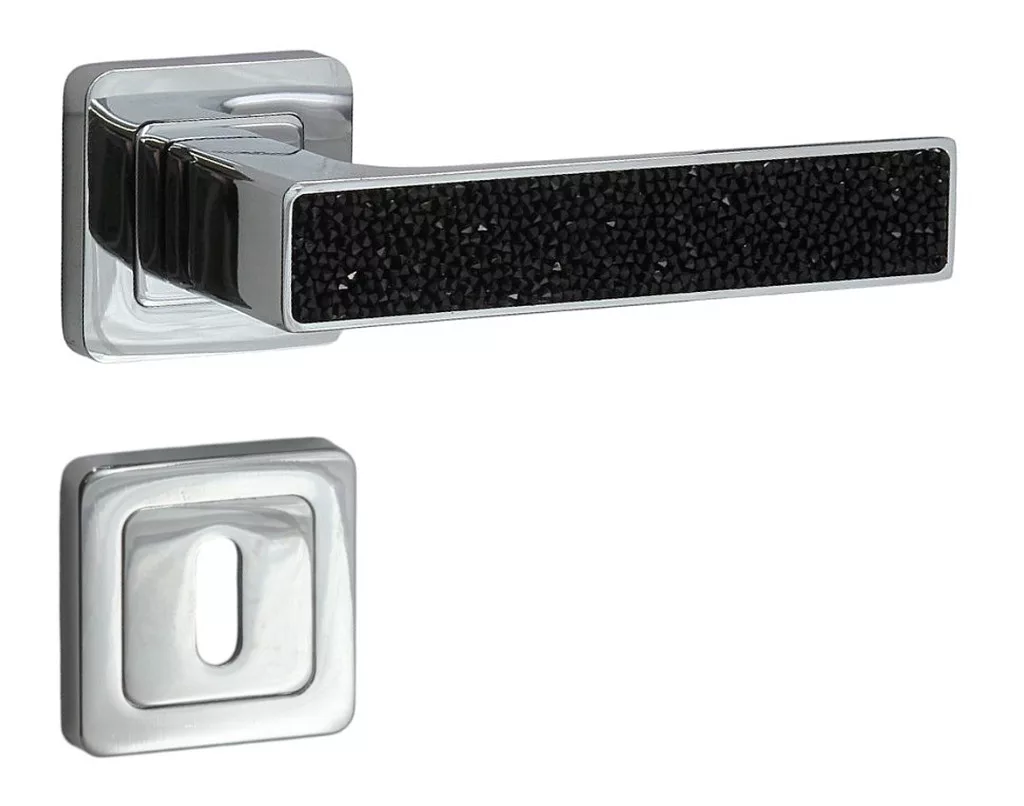 Rozetă pătrată Glamour Rozetă Crom strălucitor cu inserție de cristal negru BB