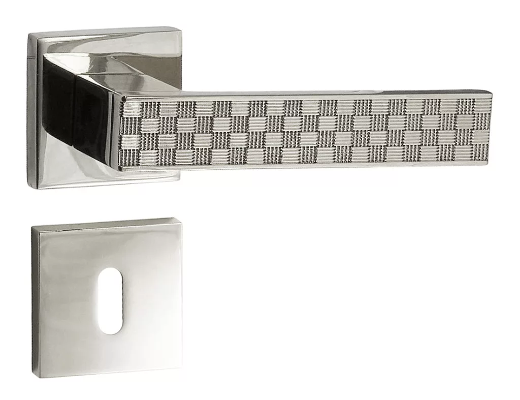 Acest mâner exclusivist impresionează prin modelul în carouri inspirat de tabla de șah, care conferă un aspect deosebit oricărei uși.