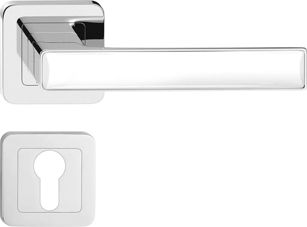 Prémium minőségű, rozettás ajtókilincs modern és elegáns kialakítással. Tartós fémkivitel, kényelmes fogás és megbízható működés, mely ideális választás bármilyen belső térhez.
