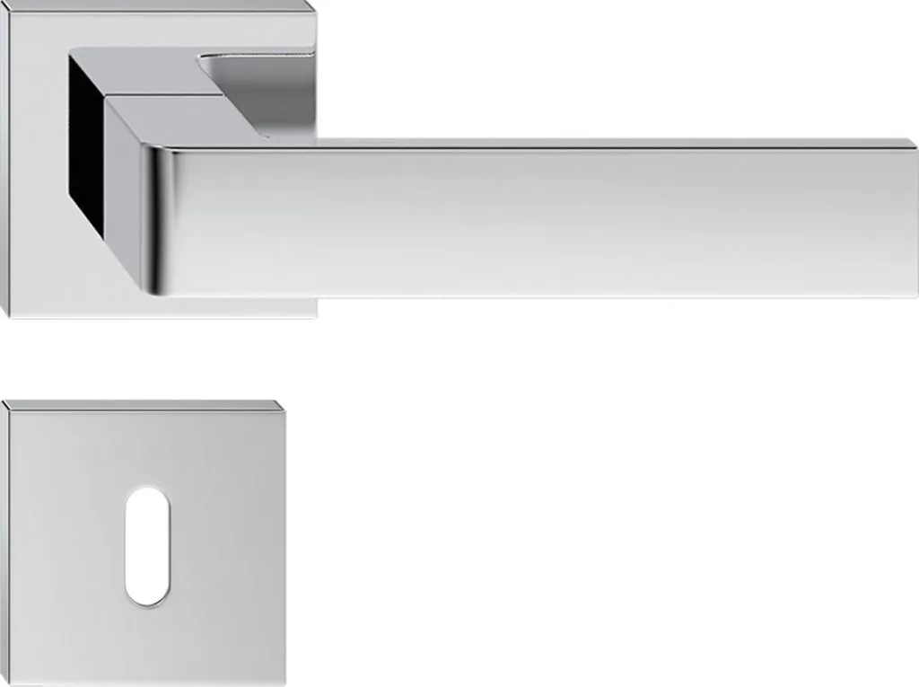 RUMBA ajtóajtókilincs szögletes K-rozettás fényes króm BB
