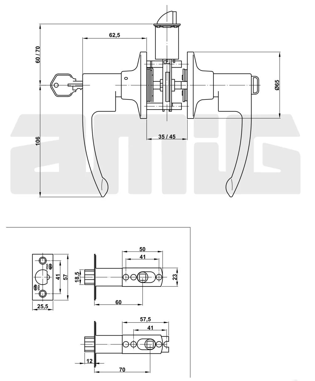 Amig American mâner de ușă cu încuietoare cu nichel mat
