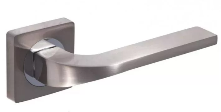 Este un mâner de ușă proiectat masiv, cu suprafețe multiple. Este realizat din material din aliaj de aluminiu, care este decorat cu finisaj cromat lucios/mat. Dimensiune: rozeta patrata: 50x50mm Orificiu cheie: 22x8mm Maner: 123x20x10,6mm